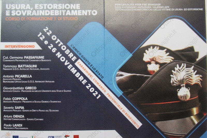 Nel comando provinciale tre giornale formative dei militari con S.O.S. Antiracket Antiusura APS