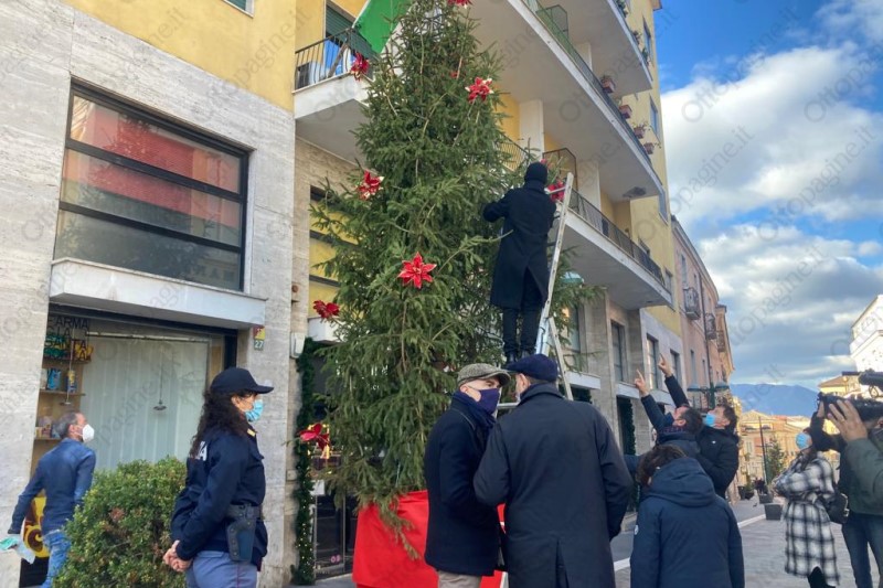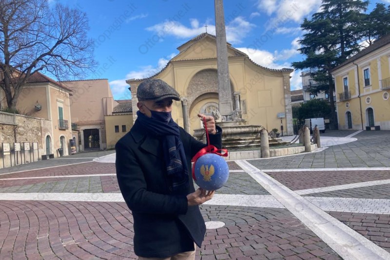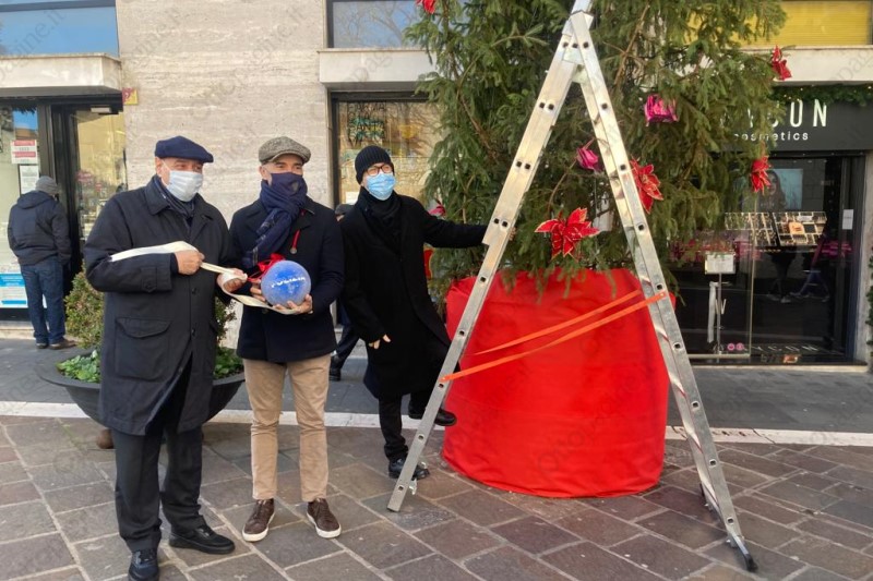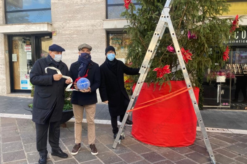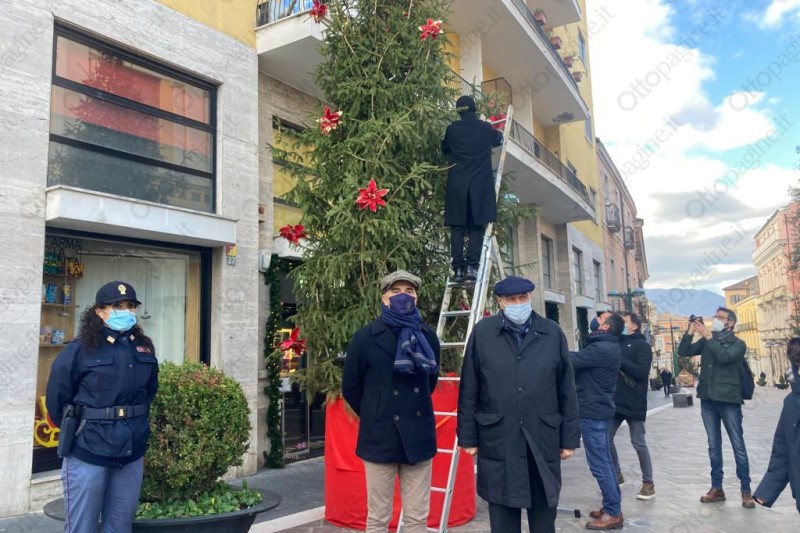 Gli auguri della Polizia di Stato con sfera di Natale posizionata lungo il Corso