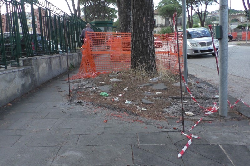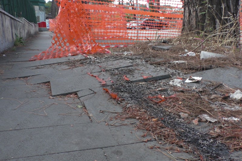 Incendiate tre recinzioni del cantiere in corrispondenza dei pini a Pacevecchia
