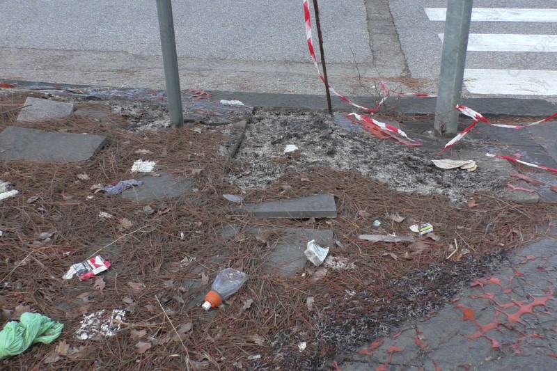 Benevento. Vandali in azione nella notte: a fuoco le protezioni in plastica e un cestino gettacarte