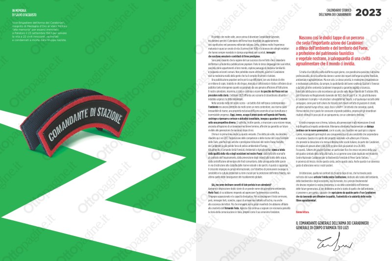Tutela dell'ambiente al centro del Calendario 2023 dell'Arma dei Carabinieri