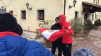 Prima dell'amichevole con la squadra locale del pomeriggio