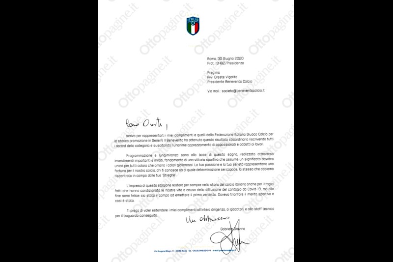 La lettera di Gravina a Vigorito