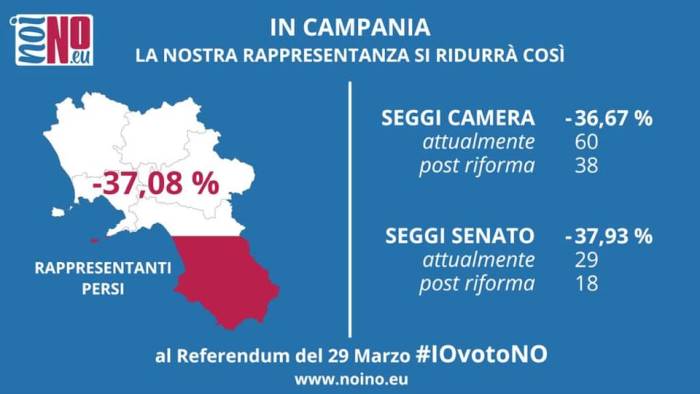 Con il taglio dei parlamentari la Campania perderebbe quasi il 40 per cento di rappresentanti, con ovvie conseguenze in particolare per aree come il Sannio o l'Irpinia già scarsamente rappresentate.