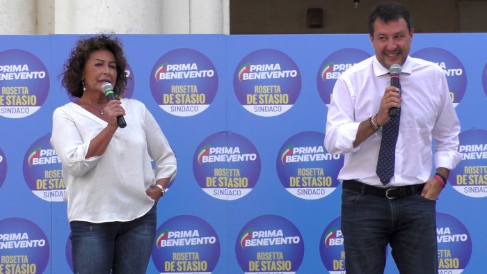 “A Salvini e a tutto il centrodestra nazionale chiedo di bloccare, bocciare e respingere tutti coloro che da destra sono passati a sinistra o altri schieramenti. Basta a questa transumanza” l'appello della candidata sindaco Rosetta De Stasio che dal palco di piazza Roma per circa mezz'ora ha parlato ai suoi simpatizzanti e ai candidati delle due liste (Fratelli d'Italia e Prima Benevento). L'unica candidata in corsa contro i tre sfidanti (Mastella, Perifano e Moretti) ha avuto parole pesanti sia per l'attuale sindaco che per il suo predecessore, Fausto Pepe: “Voluto e messo lì da Mastella ed aveva e utilizzava gli stessi identici modi e metodi per amministrare. Oggi (Pepe ndr)0 è passato dall'altra parte e queindi Mastella ha ereditato i debiti dai suoi stessi uomini politici, assessori e gente che ora è con lui. Questa città negli ultimi 15 anni e in particolari negli ultimi 5 è stata saccheggiata. I contributi che dovevano arrivare a Benevento sono stati deviati verso Salerno del suo amico De Luca. La gente ha paura a dire ciò che pensa. La gente è stanca di tutto ciò” ha terminato De Stasio che ha poi accolto il leader della Lega.