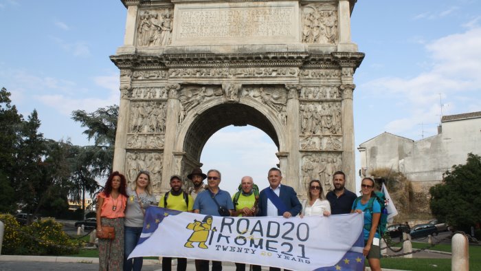 Partiti, secondo la tradizione, da Canterbury in Inghilterra il 15 giugno i Camminatori lungo questo imponente percorso di 3.200 chilometri con meta finale, il prossimo 18 ottobre, in “finibus terrae” a Santa Maria di Leuca, hanno dunque fatto tappa nel capoluogo del Sannio ai piedi dell’insigne monumento di epoca imperiale romana, nodo strategico di collegamento verso la Puglia.