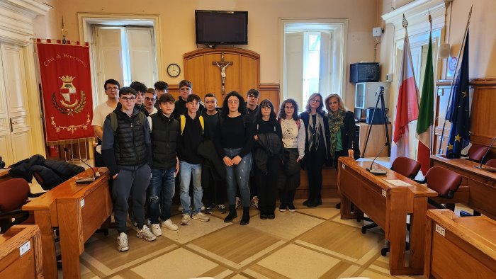 I ragazzi delle classi Terza Ic, Terza Ata, Terza Mma, Terza Tla (gruppo s_witch on) dell'Iti Bosco Lucarelli, accompagnati dalle professoresse Dolores Maria Corbo e Giovanna Rossi sono stati stamane in visita istituzionale a Palazzo Mosti.