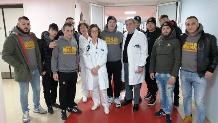 Nuovo gesto di solidarietà di cui si è resa protagonista la Curva Sud Benevento. Gli ultras giallorossi, come annunciato in precedenza con un comunicato, questa mattina hanno fatto visita ai bambini ricoverati nei nosocomi cittadini, portando doni e sorrisi. A spiegare la bella iniziativa sono stati gli stessi tifosi attraverso un comunicato apparso sui profili social: