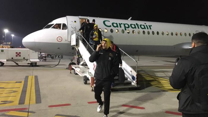 Nella foto il neo acquisto del Benevento, Barba all'arrivo della squadra giallorossa all'aeroporto di Treviso ieri sera
