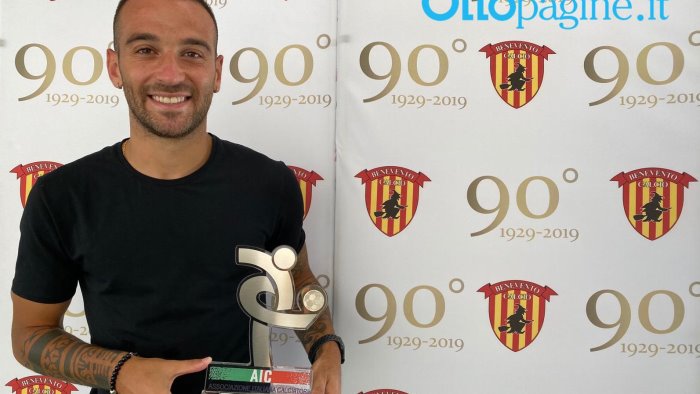 La consegna del trofeo all'attaccante del Benevento giunta in ritardo a causa del lockdown
