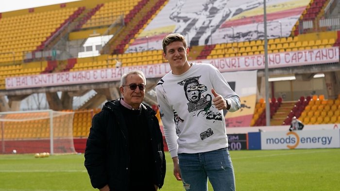 (f.s.) Ad Adolfo Gaich l'ambiente sannita deve essergli piaciuto subito. Ha una voglia pazza di entrare nel cuore della gente e di far parte a tutto tondo della sua nuova squadra. Questo pomeriggio quando gli hanno chiesto di fare due foto per immortalare la sua presenza al Vigorito, ha scelto come sfondo la Sud che aveva preparato una coreografia per l'anniversario della scomparsa di Carmelo Imbriani (15 febbraio 2013). Deve averlo toccato non poco quella gigantografia dell'ex “game boy”, tanto da chiedere di conoscerne la storia. E una volta saputo tutto, ha chiesto con la sua ingenuità di ventenne se quella maglia numero 7 fosse ancora disponibile nel roster del Benevento. C'è da sotolineare che Adolfo aveva scelto per sé la numero 23, ma appena Cilento gli ha fatto sapere che c'era ancora il tempo per cambiarla, non ci ha pensato su due volte ed ha voluto la 7 di Carmelo. Si è fatto persino consigliare dalla mamma in Argentina, che lo ha incoraggiato a fare questo passo. Un bell'atteggiamento, che serve ad un ragazzo di belle speranze, di potersi presentare con un gesto di grande suggestione alla sua nuova tifoseria. La speranza è che possa essere utilizzato già da Bologna, dove potrà sfoggiare la sua nuova fiammante numero 7.
