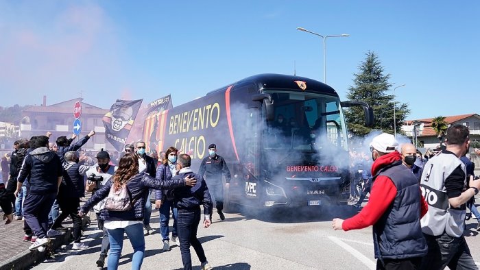 Benevento, che accoglienza al Vigorito: cori e fumogeni