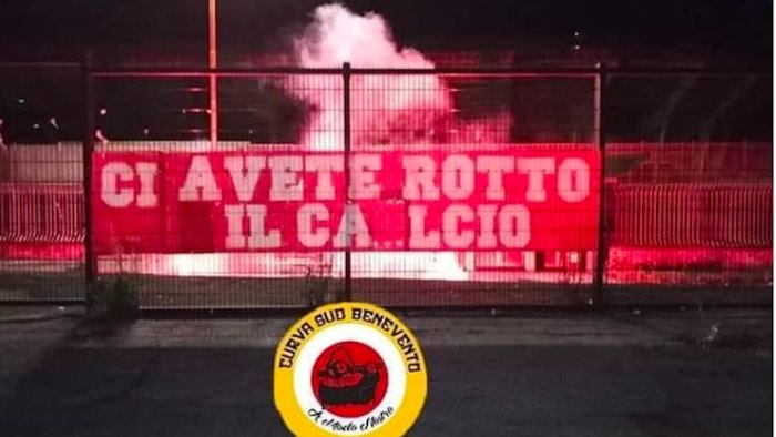 Lo striscione è talmente eloquente che non c'è bisogno di aggiungere nulla. "Ci avete rotto.. il calcio", firmato Curva Sud Benevento, che aggiunge su Instagram una nota di una lucidità estrema. Grande orgoglio, nessuna parola sprecata, un atto di denuncia che dovrebbe far riflettere chi il calcio lo gestisce. Il grido di dolore di una tifoseria che si è vista scippare un obiettivo che sembrava possibile e che deve servire a chi questo mondo lo governa a ripulirlo da tante ingiustizie.