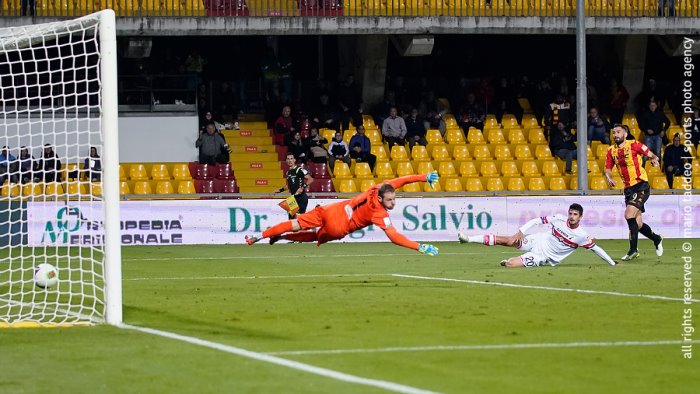 Nella foto il gol di Coda nel 2-0 del Benevento alla Cremonese il 30 ottobre 2019