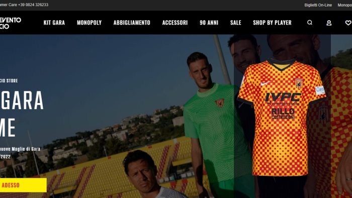 Nuovo look per lo store online del Benevento Calcio. Da quest'oggi sarà possibile acquistare i nuovi prodotti della Strega navigando all'interno di una veste grafica totalmente rinnovata. Inseriti i prodotti griffati Nike, a partire dalle maglie da gioco, all'abbigliamento per allenarsi o per il tempo libero fino ai più disparati accessori. Previsto anche uno sconto del 10% sul primo acquisto per coloro che si iscriveranno al sito. Previste le spedizioni in tutto il mondo.