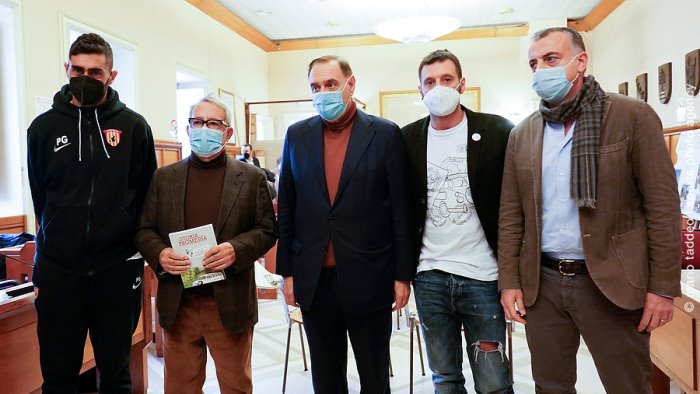 Grande commozione per la presentazione del libro "La storia di una promessa", scritto da Gianpaolo Imbriani per raccontare il rapporto che lo legava al fratello Carmello e gli oltre 300mila chilometri percorsi in giro per il mondo con l'unico intento di far conoscere la storia dell'ex capitano e allenatore del Benevento a tutti i popoli. Un intento di grande spessore che ha commosso tutti, a partire da coloro che erano presenti all'evento coordinato dal giornalista Luigi Trusio. Gli ex compagni Tagliatela e Gori, così come il presidente Vigorito e il sindaco Mastella che oltre a ricoprire la carica di primo cittadino ha ricordato Imbriani con grande commozione per via della stretta parentela.