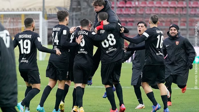 45' Presunto fallo di mano di Angella, ci sono le proteste dei sanniti ma Abbattista fischia la fine del primo tempo, ma il Var gli segnala il contatto.