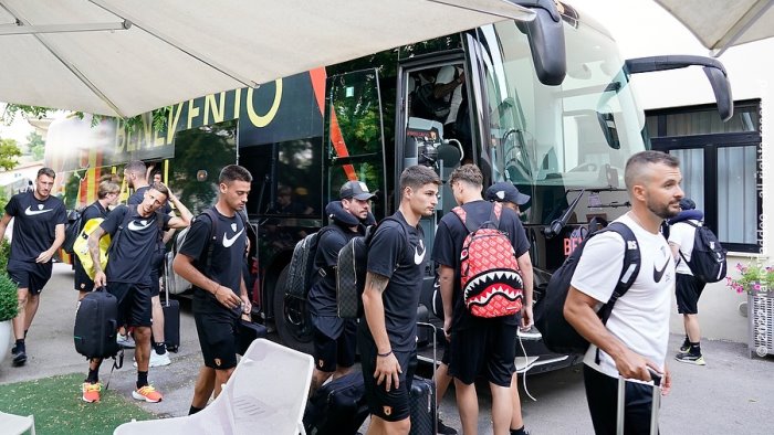Pressochè in perfetto oraio. La squadra giallorossa è appena sbarcata a Cascia dopo il viaggio in pullman da Benevento. Inizia ufficialmente il "romitaggio" in terra umbra. Pe stasera, considerato che la squada si è allenata stamattina all'Antistadio, ci sarà solo riposo: una doccia e poi la cena. Da domani mattina inizia il lavoro più intenso.