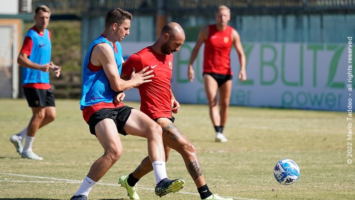 Ma gli occhi avidi dei tifosi erano concentati su tutti gli ultimi arrivati: da Simy, applaudito ad ogni gol, anche quello più facile, a Ciano, che mostra una buona condizione fisica, dal polacco Kubica, che deve ancora liberarsi del passaggio ad un altro mondo calcistico (appare ancora un po' fastornato), all'ultimo arrivato Leverbe, paticamente al suo primo allenamento con la sua nuova squadra. Nelle varie esercitazioni richieste dall'allenatore anche un paio di prodezze di Nino La Gumina, che sembra l'attaccante più in palla. Paticolamente bello un gol siglato da fuori area che si è infilato alla destra di Manfredini vanamente proteso in tuffo. Si è allenato anche Gaetano Letizia, che però ha saltato la partitina finale per non rischiare la spalla dolente, al pari di Schiattarella che ha aggiunto dopo le esercitazioni col pallone un'altra energica razione di lavoro atletico.