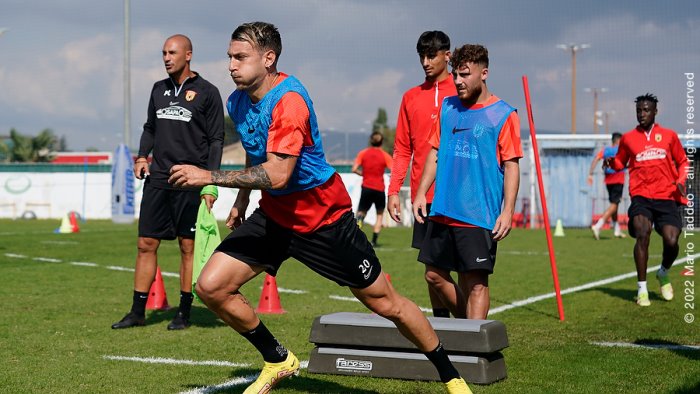 Appuntamento alle 10,30, inizio di atletica, poi uno stop di una ventina di minuti in sala video. Il ritorno in campo con partitella a tema: passaggi continui con l’obiettivo unico di attaccare. Squadre mischiate con quello che rimane dell’organico, soprattutto da sottolineare la presenza di Nino La Gumina, che è sembrato completamente recuperato e che si candida sin d’ora per occupare il ruolo di vertice più avanzato della squadra giallorossa. Si è mosso bene anche Farias, che nella partitina seguente, quella aperta anche alle conclusioni a rete, ha segnato più di un gol.