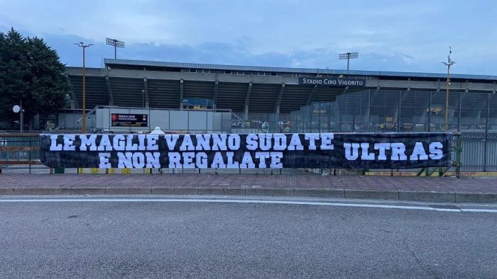 Benevento, striscione degli ultras: "Le maglie vanno sudate e non regalate"