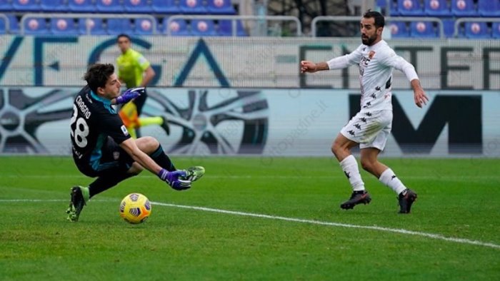 Nella foto di Taddeo il gol di Sau il 6 gennaio 2021 alla Sardegna Arena