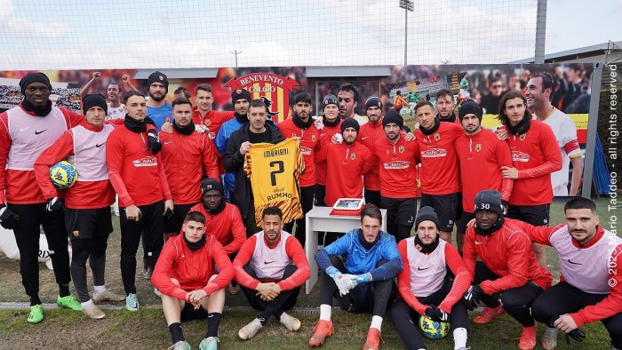 Bel gesto quello del Benevento Calcio che, al termine della seduta d'allenamento di questa mattina, ha festeggiato il compleanno di Carmelo Imbriani. Il compianto capitano giallorosso, scomparso nel 2013, quest'oggi avrebbe compiuto 47 anni. All'Antistadio che ne porta il nome, il fratello Gianpaolo ha raggiunto la squadra, con la quale ha degustato anche una torta raffigurante l'immagine del "Game boy" sannita.