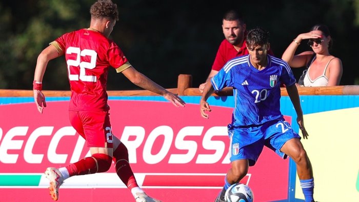 Nella foto della Figc Carfora contro la Serbia con la maglia azzurra