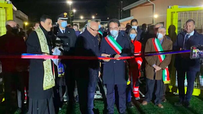 Nella foto il presidente Curcio taglia il nastro inaugurale del nuovo stadio che gli è stato intitolato