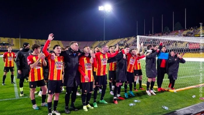 Riepiloghiamo ciò che attende il Benevento. La squadra giallorossa entra in gioco martedì 14 maggio nel Primo turno della fase Nazionale, quando dovrà giocare la partita di andata in campo esterno. Non si sa con chi giocherà, ma si conoscono almeno tre squadre che non dovrà affrontare e che entreranno in gioco in questo turno: vale a dire le altre due terze, cioè Vicenza e Carrarese e la vincente della Coppa Italia, vale a dire il Catania. Queste tre insieme al Benevento saranno teste di serie, insieme alla migliore classificata nella stagione regolare tra le sei vincitrici della fase a girone. Queste cinque saranno accoppiate tramite sorteggio alle altre cinque che arriveranno dalla fase a girone. Il Benevento, come tutte le teste di serie avrà il vantaggio di poter andare avanti (senza supplementari e rigori) anche in caso di due pareggi o di due risultati speculari, nei quali i gol in trasferta non varranno doppio.