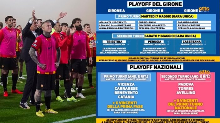 Interessante a questo punto chiudere con i pronostici di Eurobet sulle possibilità di vittoria delle squadre che partecipano ai play off. Ecco le quote proposte: Padova e Avellino a 4,55, Torres a 6,00, Vicenza a 7,00, Benevento e Carrarese a 9,00, Catania a 10, Triestina, Casertana, Taranto e Perugia a 18, Crotone e Pescara a 28, Atalanta a 35 con Gubbio, Juventus e Picerno. A 51 il Legnago, a 55 Cerignola e Giana Erminio. Le quote più alte sono quelle di Arezzo, Giugliano, Latina, Lumezzane, Pontedera, Pro Vercelli, Rimini e Trento le cui vittorie sono pagate 81 volte la posta (se giocate 10 euro, ne vincente 810).