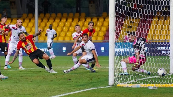 Nella foto la partita dello scorso campionato tra Benevento e Taranto: il gol di Ferrante