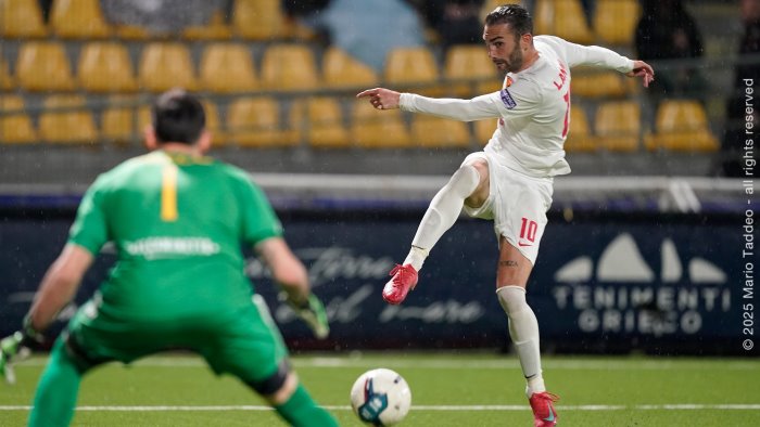Dopo gli esercizi dedicati all'attacco si è passati alle “esercitazioni sul possesso palla”. Una peculiarità che sembra far parte del bagaglio dei giallorossi, ma che soprattutto su una superficie artificiale ha bisogno di qualche esercitazione in più: il pallone è più veloce e rimbalza in maniera molto diversa da come fa sull'erba naturale. Nella mattinata dell'Avellola non è mancata ovviamente la partitella finale su metà campo.