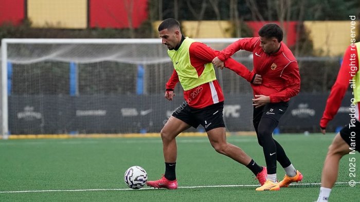 La seduta all'Avellola inizia intorno alle 11 e finisce alle 13 passate, quando Floro Flore indica tre minuti di recupero per la partitella finale. Proprio come se fosse una partita di campionato, con proteste e recriminazioni. Perchè nessuno ci sta a perdere, anche se si tratta solo di una partitella di allenamento. Si va a 200 all'ora, come piace a Floro, che osserva attento e divertito in mezzo al campo, coadiuvato dal suo staff e dall'ottimo Monticciolo, che scandisce, cronometro alla mano, i momenti della sfida. Vanno tutti forte, nessuno si risparmia. Segnano in tanti, da Tumminello a Manconi, a Lamesta, a Carfora. Vince la squadra in maglia rossa, facendo “rosicare” quelli con la pettorina gialla.