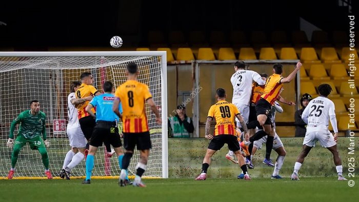 Corre il minuto numero 57 della ripresa nel corso di un recupero infinito, trascorso più al “Football video support” che sul terreno di gioco. Il protocollo continua ad essere pasticciato, tanto che Bertotto chiede la revisione all'arbitro sulla stessa azione che una manciata di secondi prima il direttore di gara ha ritenuto fosse da rigore. Tempo sprecato, ma anche un sottile gioco psicologico che costringe Salvemini ad una lunga attesa sul dischetto. Dopo l'errore del bomber di Andria sembra finita e invece ci sono ancora loro due a scuotere la strega: Davide Lamesta che disegna una parabola perfetta da destra ed Edo Pierozzi, che salta di testa come un bomber consumato e infila nell'angolino alla destra di Marcone. Un gol che fa strizzare gli occhi, bello e determinante. Un gol per la fuga in un campionato che parla sempre più idioma sannita.