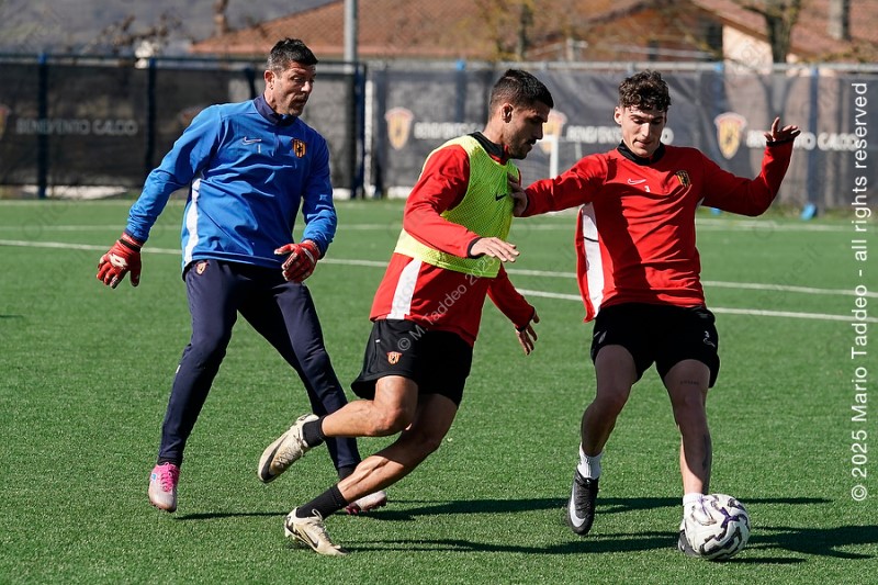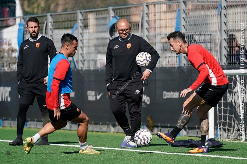 Gli altri sudano e si danno da fare. Si inizia con gli esercizi soliti: palleggi, possesso palla, attacco alla porta. Ma il clou, come sempre. È la partitina finale. Nessuna prova, siamo appena a mercoledì. Solo la verifica della condizione dei giallorossi. Che mostrano di stare bene. Tumminello segna un gran gol. Non è una sorpresa, ormai. L'ex Crotone è attaccante di altra categoria ed è in una condizione ottimale. Può essere l'arma in più della squadra in questo momento. Intorno a lui si muovono con grande sincronismo Manconi, Mignani, Lamesta. L'ex Rimini ha il sinistro “caldo”, gli riescono giocate di grande effetto. Mignani è un moto perpetuo, sembra disordinato, ma è un problema per chi deve marcarlo.