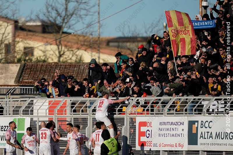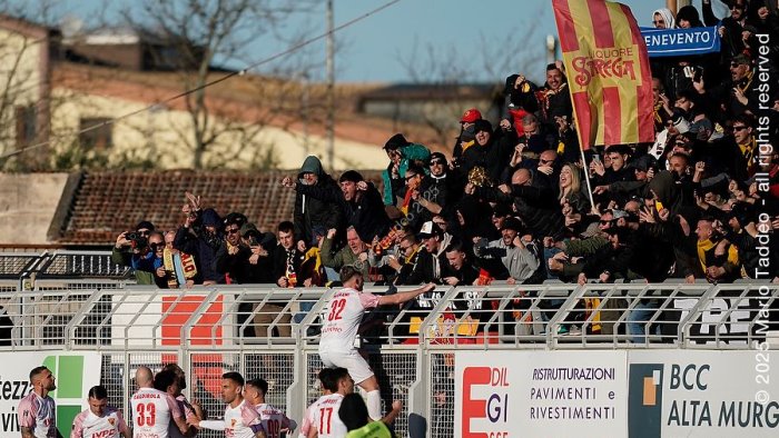 Successo di assoluto spessore per il Benevento, che espugna il campo dell'Altamura al termine di una gara intensa, combattuta e ricca di emozioni, soprattutto nella seconda frazione. L’avvio di partita è stato equilibrato. Da una transizione veloce è nato il vantaggio dell’Altamura: al 37’, un’azione rapida ha colto impreparata la difesa giallorossa e Grande è stato abile a finalizzare, portando i suoi sull’1-0 e mandando le squadre negli spogliatoi con l’inerzia dalla parte dei biancorossi. Nella ripresa la reazione della Strega è stata immediata e decisa. Il Benevento ha alzato il baricentro, aumentando il possesso palla e la pressione offensiva, costringendo l’Altamura a difendersi con sempre maggiore intensità. Dopo diversi tentativi e alcune occasioni non concretizzate, il pareggio è arrivato con una giocata spettacolare: Prisco ha trovato una straordinaria rovesciata che ha sorpreso il portiere avversario, riaccendendo entusiasmo e fiducia tra i giallorossi. Sull’onda dell’entusiasmo, il Benevento ha continuato a spingere alla ricerca del sorpasso. La pressione costante ha portato all’episodio decisivo: calcio di rigore per la squadra di Floro Flores, trasformato con freddezza da Marco Tumminello, che ha firmato il 2-1 completando la rimonta. Nel finale i giallorossi hanno gestito con maturità il vantaggio, concedendo poco agli avversari e portando a casa tre punti pesantissimi. Una vittoria che permette al Benevento di tornare al successo e di mantenere il Catania distante cinque punti in classifica, confermando le ambizioni di alta classifica dei giallorossi.