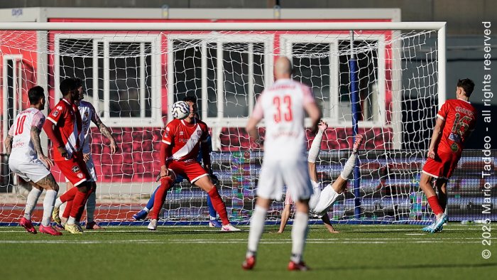 La risposta alla potenza di Scipioni (al suo terzo gol stagionale) sono state le doti acribatiche di Tony Prisco: una rovesciata leggera e “voila” il pallone finisce nell'angolo alla destra di Alastra. Un gesto tecnico di grande spessore, un gol come non se ne vedono molti in serie C.