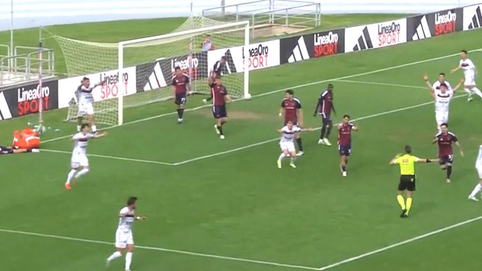 Nella foto tratta da Sky il gol annullato al Foggia