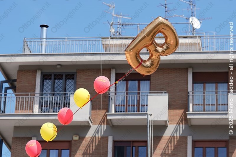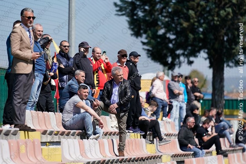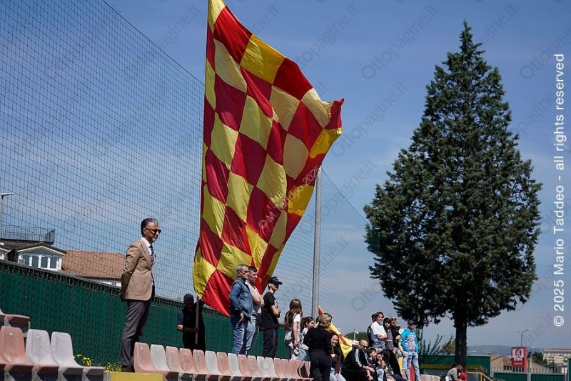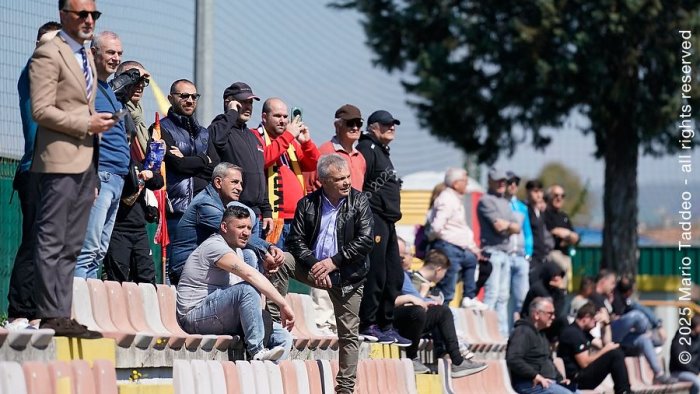 Nel gruppo dei giallorossi risaltano le chiome bionde. Non quella naturale di Mignani, come sempre sul pezzo e concentratissimo, ma quelle di Lamesta, di Kouan, di Salvemini. Capigliature “sacrificate” ad una promozione storica e ottenuta con ben tre settimane di vantaggio. Il biondo dei loro capelli fa tanto “pendant” col sole che splende sull'Imbriani. Anche questo è un colore della festa.