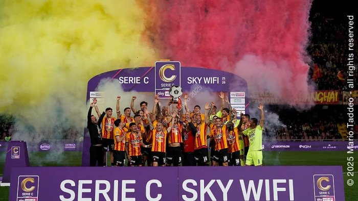 Il numero uno del club ha, poi, affidato la Coppa al suo capitano, Mattia Maita, che l’ha alzata al cielo di Benevento. Gesto accompagnato dall’esplosione di fumogeni giallo e rosso, fuochi d’artificio e salutato dal tripudio del “Vigorito”, tornato ad emozionarsi per la vittoria di un campionato e ora libero di sognare traguardi sempre più ambiziosi.