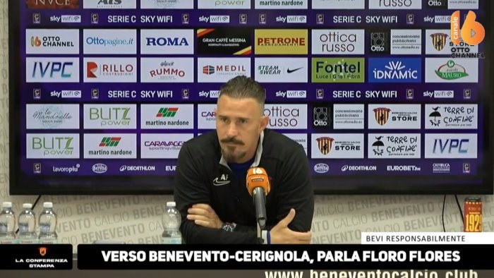 In conferenza stampa, il tecnico giallorosso Floro Flores ha parlato così a poche ore dal match con il Cerignola: "Sono già proiettato all'anno prossimo, sono onesto. Questo è l'ultimo step, poi è chiaro che c'è la Supercoppa che è un nostro obiettivo. Non vedo l'ora di ripartire perché anche per me è una grande esperienza. Ce la siamo goduta fino in fondo, senza perdere di vista il campionato in corso perché abbiamo fatto le nostre prestazioni. I ragazzi stanno onorando il campionato. Domenica è una festa, ma noi vogliamo vincere. Questa deve essere la mentalità del Benevento perché ti fa lavorare bene e ti permette di stare sereno durante la settimana. Le scelte? Andrà in campo la formazione giusta. Domenica è stata una bella sorpresa vedere Carfora giocare come dico io, così come mi è piaciuto molto Esposito: gli ho fatto i complimenti perché mi ha fatto una bella impressione. Lo stesso Celia si è fatto trovaro pronto, anche Romano. Mignani è una certezza. Sono stato contento. Ho molti dubbi per svariati motivi. Mi dispiace che uno come Sena non abbia avuto spazio, ma davanti ha calciatori importanti. Tutti meritano di giocare, se c'è la possibilità è giusto che abbiano qualche minuto. A oggi non so dire chi giocherà o meno. L'unica certezza è che ci sarà Esposito in porta".