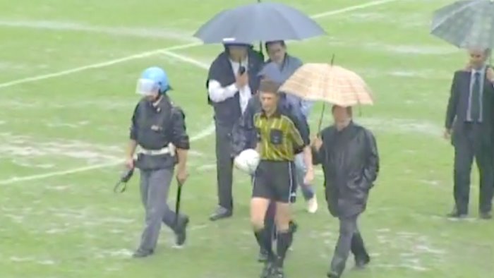 Nel frame Rocchi sospende nocerina-Benevento: è il 27 maggio 2002