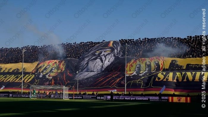 La coreografia messa in atto dalla Curva Sud in occasione del match col Cerignola ha fatto il giro d'Italia e non solo. È stato uno spettacolo unico, tra i migliori in assoluto offerti dagli ultras giallorossi che sono stati autori di un salto di qualità importante. In tanti hanno lavorato giorno e notte per realizzare una vera e propria impresa che, occorre precisarlo, si sarebbe svolta a prescindere dal risultato finale della stagione. Gli ultras della Curva Sud si sono affidati allo scenografo sannita Fabio Melillo per la progettazione. Melillo ha spiegato la genesi del progetto: "Nasce circa sei mesi prima della sua realizzazione, da una volontà chiara e condivisa dei gruppi organizzati della Curva Sud: costruire una coreografia di fine stagione che non fosse una semplice manifestazione estetica, ma un atto identitario capace di rappresentare il territorio, l’appartenenza e l’orgoglio di un popolo. Questa volontà si è manifestata in un momento in cui i risultati sportivi non erano ancora definiti, a testimonianza di un’esigenza che andava oltre il campo: raccontare una comunità prima ancora di celebrare un traguardo. In questo contesto è emersa la necessità di affidarsi a una figura professionale in grado di tradurre questa visione in un linguaggio scenografico strutturato, riconoscibile e coerente. Il lavoro si è sviluppato attraverso un percorso articolato fatto di ascolto, confronto e restituzione progettuale. Sono stati elaborati diversi bozzetti preliminari e selezionata la soluzione più rappresentativa. Da quel momento ha preso forma un iter progettuale completo: rilievi, studio tecnico, scelta materiali e sviluppo grafico".