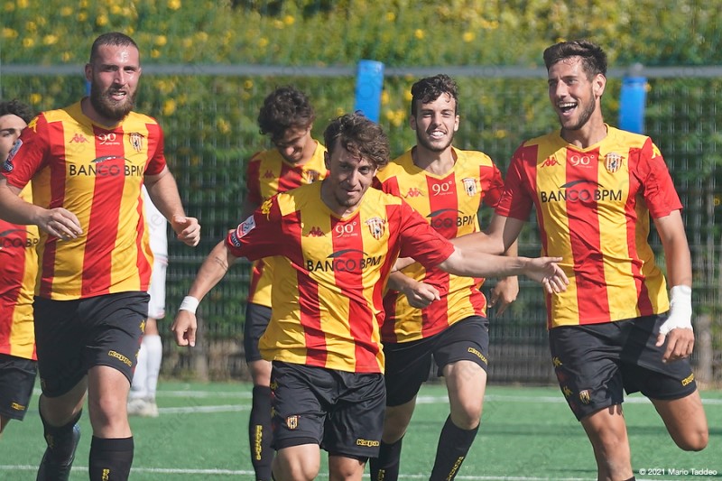 Benevento: Diglio, Vigorito (9’st Bracale), Talia, De Francesco, Ciaravolo, Carriola (22’st Di Serio), Cesarano (9’st Foggia), Caserta, Sorrentino (37’st Manzi), Alfieri, Moschini (22’st Todisco). A disp.: Esposito, Barilotti, Galietti, Bracale, Di Martino, Strazzullo. All.: Carbone
