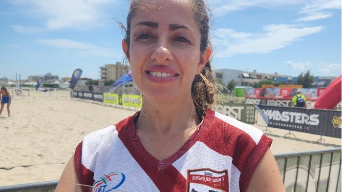 "Siamo soddisfatti della performance dei Bersaglieri Sanniti all'XMuster Senigallia," ha dichiarato Giulia Falato (in foto), capitano per l'occasione dei Bersaglieri. "Il terzo posto è un risultato positivo e un riconoscimento per l'impegno profuso dalla squadra. E' stata un'esperienza nuova per il nostro team giocare sulla sabbia ma la fatica e' stata ricompensata da un brillante piazzamento. Congratulazioni anche allla Touch Roma per la loro vittoria." Da sottolineare l'ottima prestazione di Giulia Falato, autrice di 3 mete e tra i migliori realizzatori del torneo. Il torneo di Senigallia ha rappresentato il primo torneo nazionale di beach touch e l'auspicio è di organizzare per il prossimo anno un tour nazionale con tappe su diverse spiagge italiane cosi da promuovere il touch football nelle sue varie forme esaltandone l'inclusione e la socialita'.