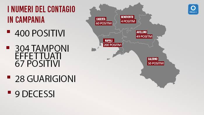 Aggiornamento ore 23.20 Altri 50 positivi in Campania: siamo a 400 casi. (Leggi qui)