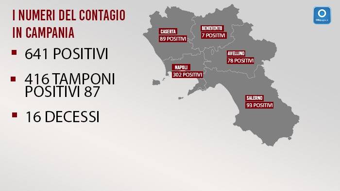 Aggiornamento 22.30 Altri 64 positivi. Altri 13 in Irpinia. Campania a 641 casi (Leggi qui)