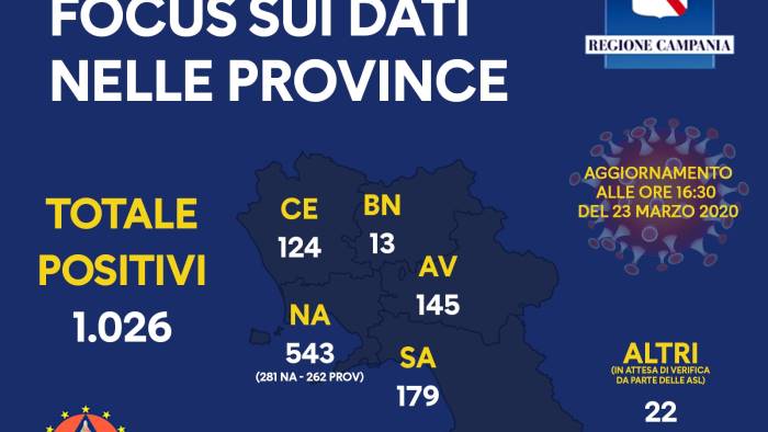 L'unità di Crisi della Regione Campania comunica che in nottata sono pervenuti i risultati del centro di riferimento dell'ospedale Ruggi d'Aragona che nell'ultima sessione di ieri ha esaminato 70 tamponi, di cui 13 risultati positivi.