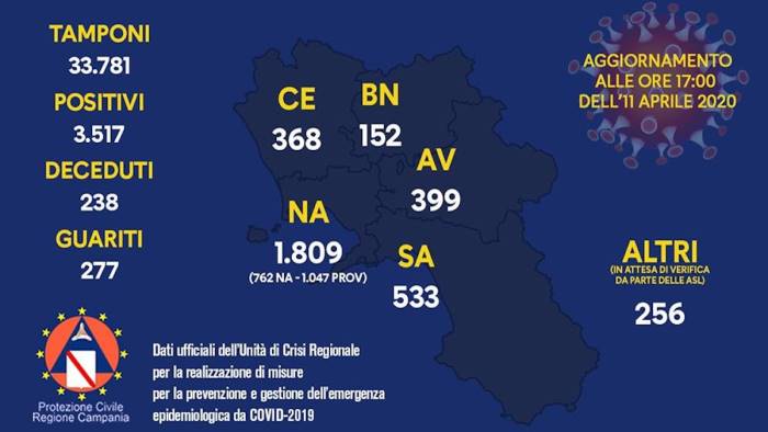 L'Unità di Crisi della Regione Campania ha comunicato il dato - aggiornato alle 23.59 di ieri - con il focus sui tamponi positivi in Campania ripartiti per province: